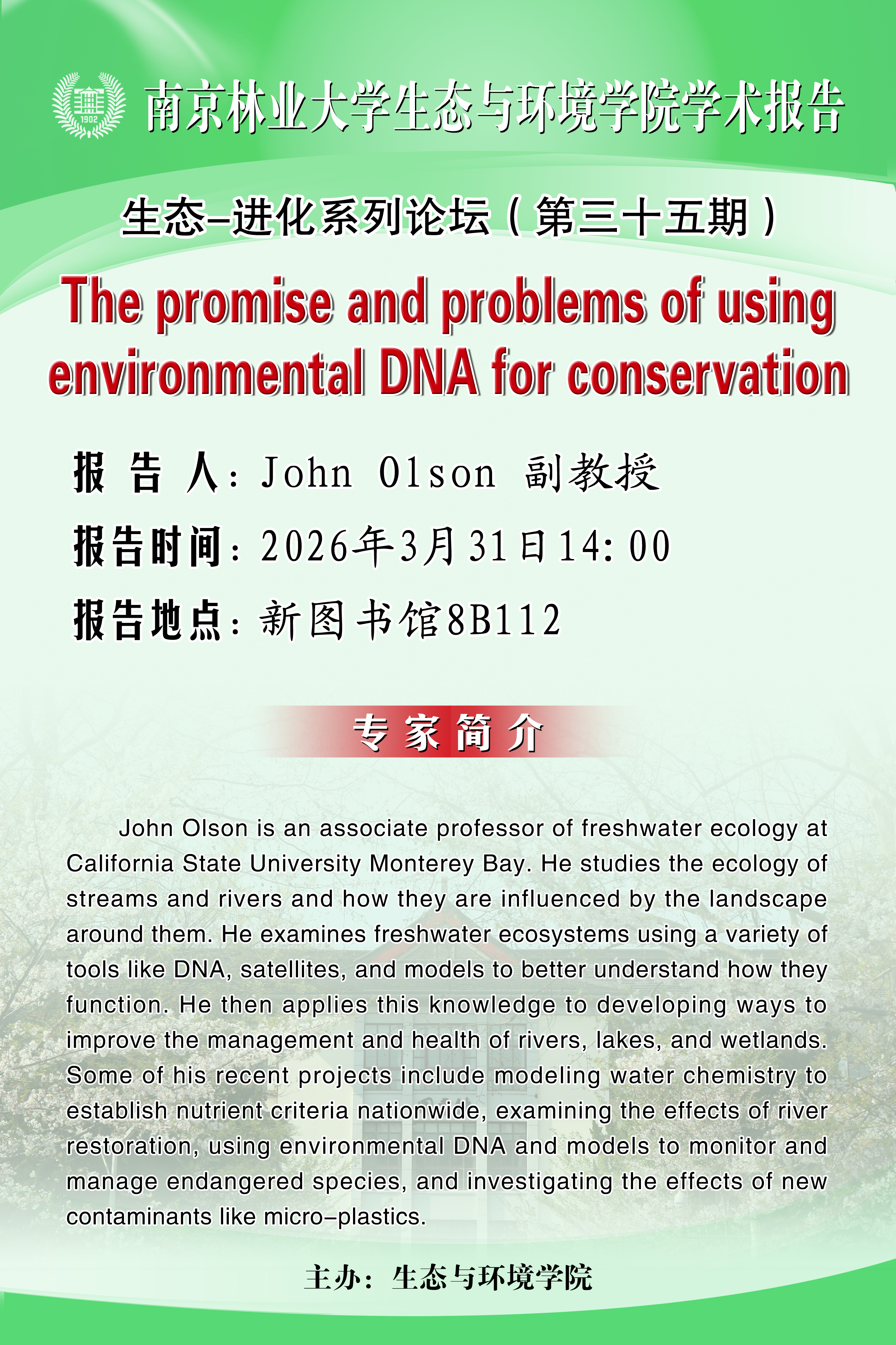 生态-进化系列论坛(第三十五期)